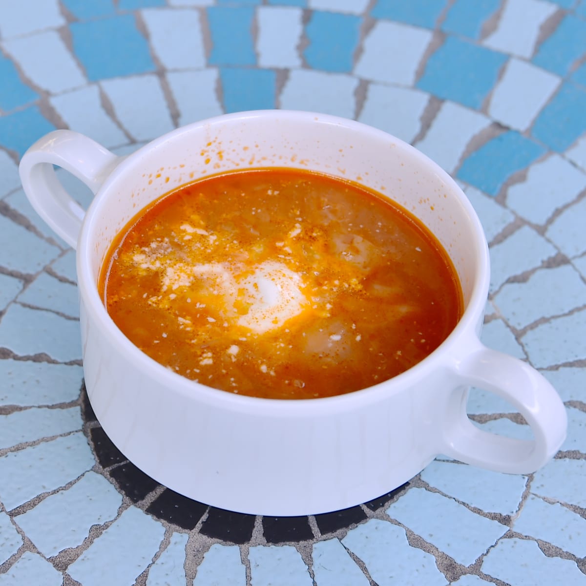 ミネストローネ、サワークリームトッピング