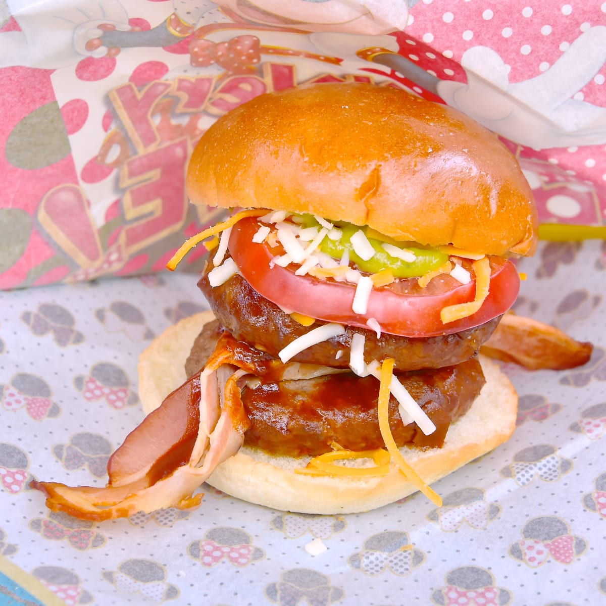 ベーコン、アボカド、トマトバーガーはボリューム満点!