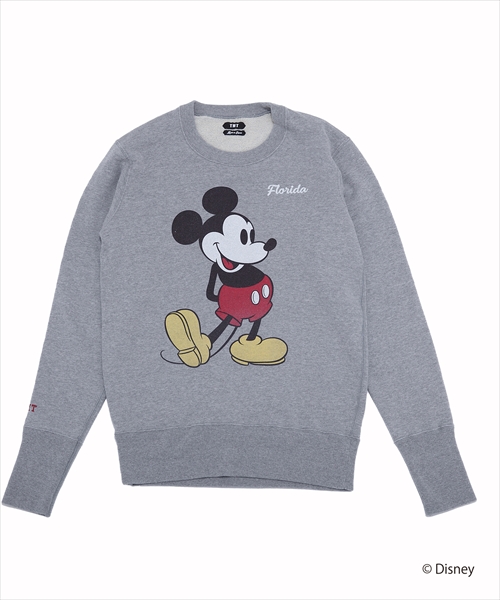 おすましポーズの「ミッキーマウス」とTMTオリジナルのFloridaロゴが可愛いスウェットシャツ。