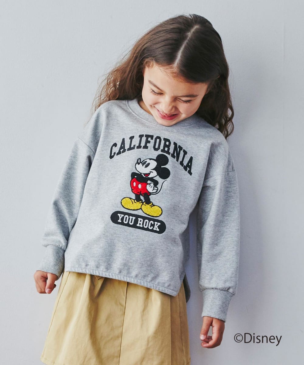 フロントに「ミッキーマウス」のサガラ刺繍が施された裏毛プルオーバー。