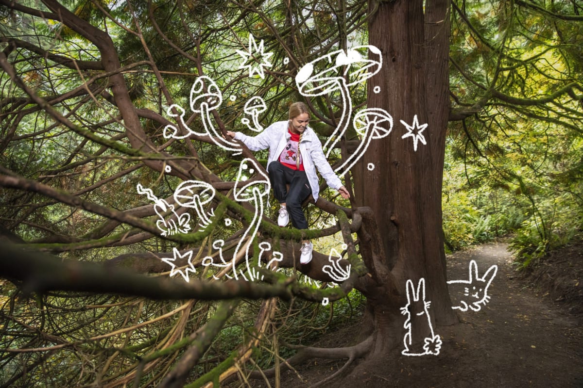 「ミッキーマウス」がハイキングやキャンプに挑戦したアートが採用されたアウトドアコレクション。