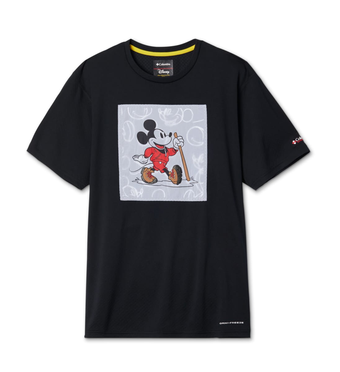 アウトドアを楽しむハイカー姿の「ミッキーマウス」グラフィックが前面に施された「ディズニーゼロルールズグラフィックTシャツ」