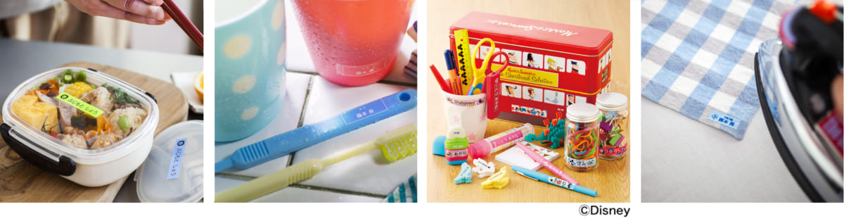 入園・入学の準備に、お弁当や水筒には水に強いラミネートテープ、ハンカチや巾着にはファブリックテープと、用途に合わせたテープを選ぶことができます☆