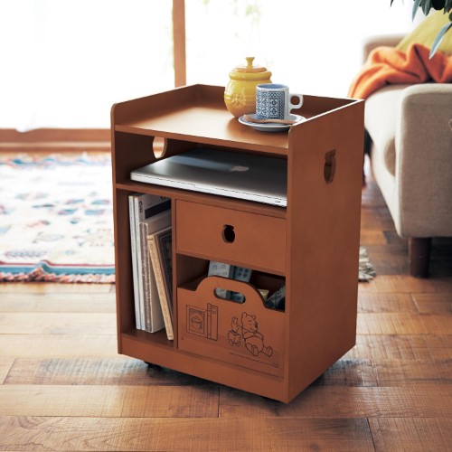 くるりと回転して、ゴチャつきがちな小物を目隠しできるリビングワゴン。