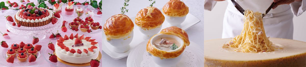 苺スイーツ、温製・冷製料理はブッフェスタイルでお好きなだけ。