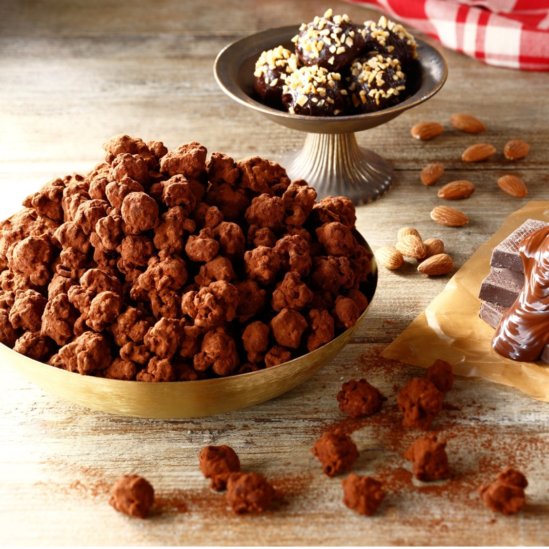 甘いチョコレートでコーティングしたクラッシュアーモンド キャラメルクリスプにビターなココアパウダーをたっぷりとまぶした、バレンタインにぴったりな新レシピです。