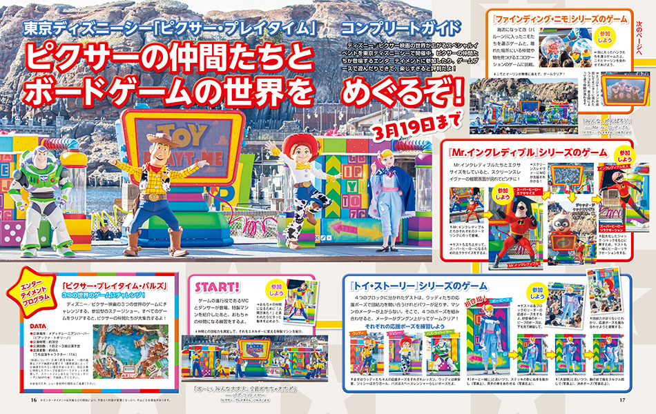 東京ディズニーシー特集では、[「ピクサー・プレイタイム」コンプリートガイド ピクサーの仲間たちとボードゲームの世界をめぐるぞ!]や、[「ダッフィー&フレンズのハートウォーミング・デイズ」でほんわか気分♡]を掲載!