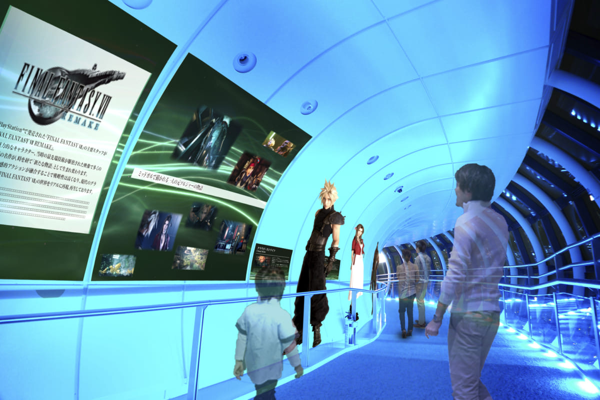 約110メートル続く回廊部の壁面には『FINAL FANTASY Ⅶ REMAKE』に登場するキャラクターたちの装飾を施します。