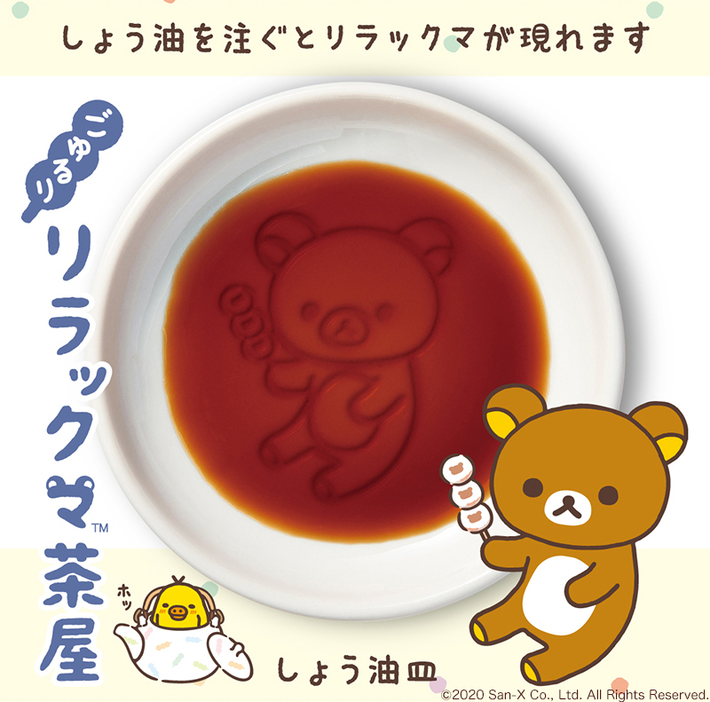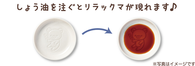 一見真っ白なしょう油皿に、しょう油を注ぐとかわいいリラックマが現れる楽しいグッズです☆