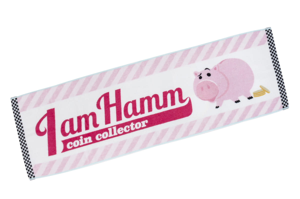 "I am Hamm"と“coin collector”と大胆にデザインされたロングフェイスタオル。