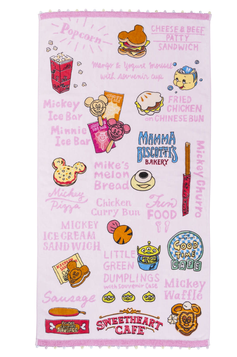 手書き風のタッチがかわいいパークフードモチーフのバスタオル。