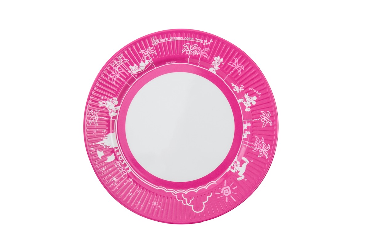 タンブラーやプレートは、パーク内の飲食施設で実際に使われているお皿やカップのデザインを、ピンクにアレンジしたグッズ。