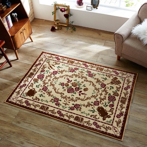 ラグ全体は、バラや本のモチーフで彩られています!