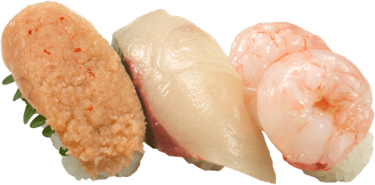 人気の3貫セットは「熊本県産 活〆シマアジ」「博多明太子」「鹿児島県産 たかえび」の3種のネタが楽しめます!