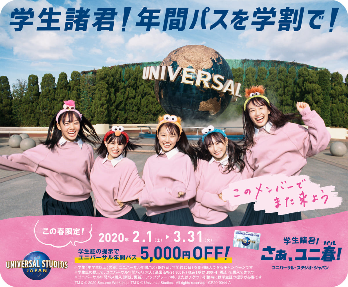 対象期間中に、学生証を提示するとユニバーサル年間パスが 5,000 円割引で購入できるキャンペーンです。