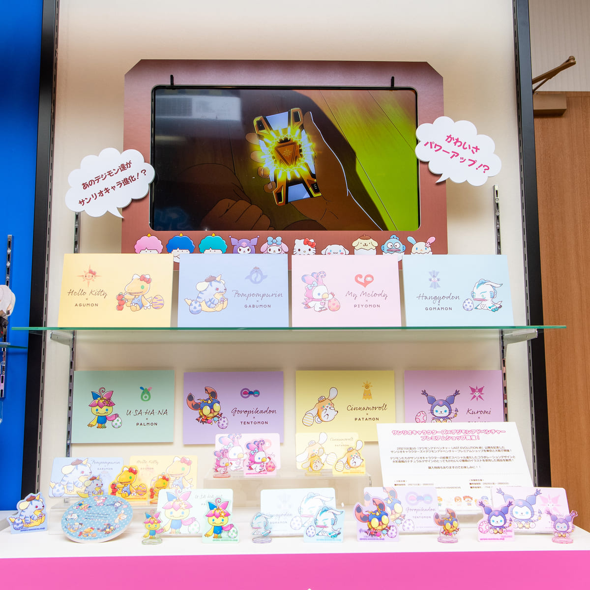 サンリオキャラクターズ×デジモンアドベンチャーのプレミアムショップの開催も決定。