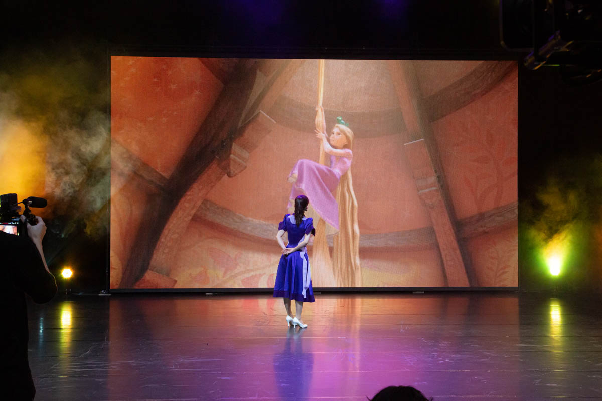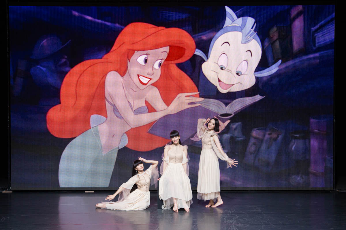 今回、「⾃由への扉」(映画『塔の上のラプンツェル』より)と「パート・オブ・ユア・ワールド」(映画『リトル・マーメイド』より)は、アクターズスクール広島時代から3⼈にダンス指導をしている演出振付家のMIKIKOさんが担当。