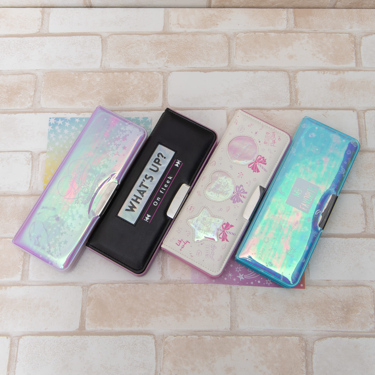 トレンドのオーロラ素材を使用した両開きタイプのマグネット筆入れで、2020年2月より全国の文房具取扱店などで発売されます☆