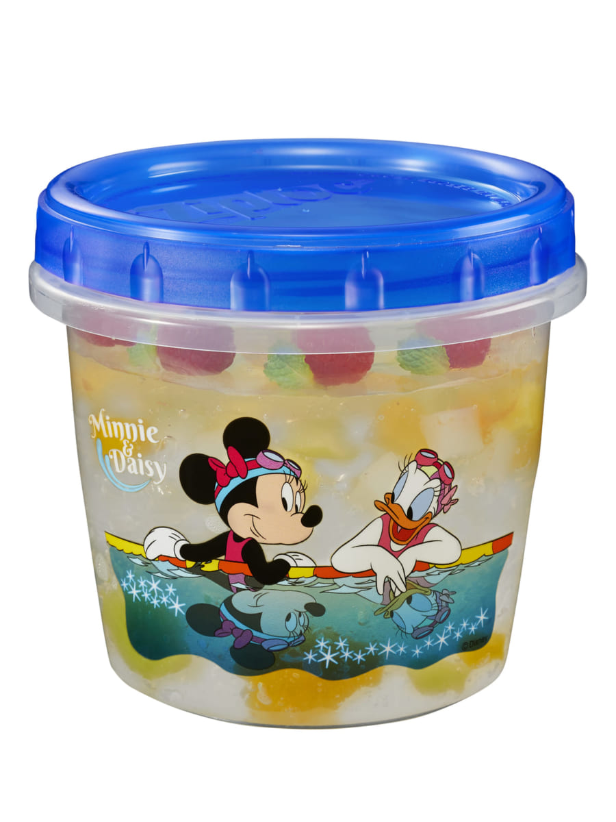 「ジップロック スクリューロック」の730mlサイズは、「ミニーマウス」と「デイジーダック」が水泳を楽しむ、可愛らしいデザインです。