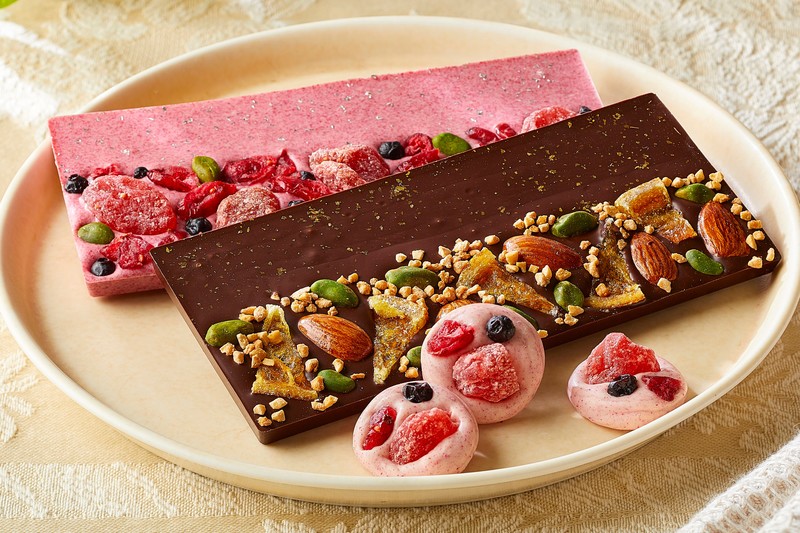 3種のベリーとピスタチオをトッピングした「季節のショコラ ラズベリー」とナッツと清見オレンジをカカオ70%チョコレートにトッピングしたほろ苦く大人の味わいを楽しめる「季節のショコラ カカオ70%」の2種類がラインナップされています。