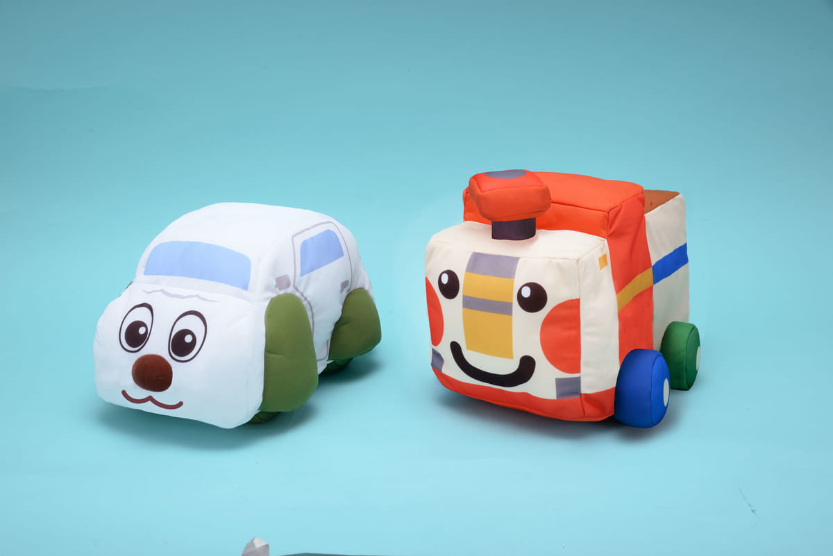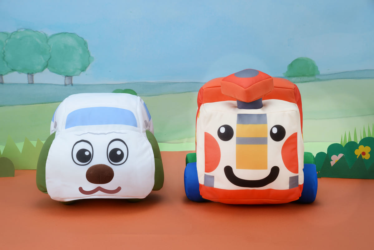 作中の人気コーナー「のりものタウン」より、「ワンワンカー」と「ゴットン」がデザインされた「ワンワンとうーたん ワンワンカー&ゴットン スペシャルぬいぐるみ」