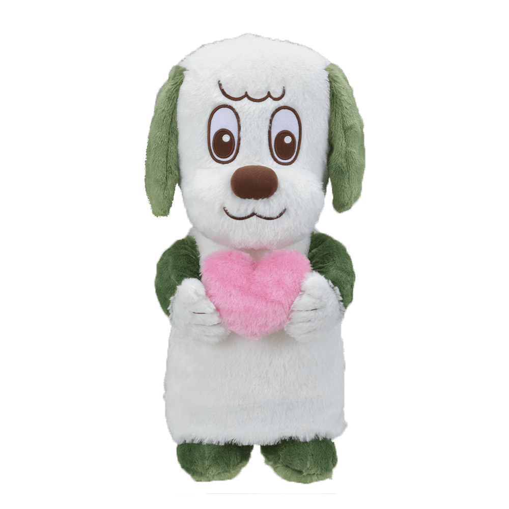 ハートを持った「ワンワン」の「ワンワンとうーたん ワンワンのギガジャンボハートぬいぐるみ」