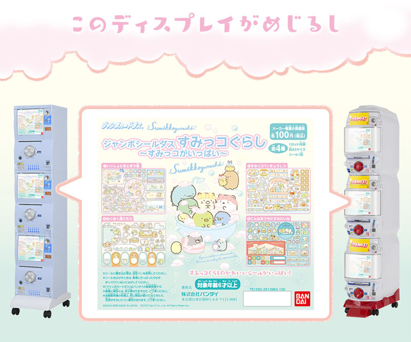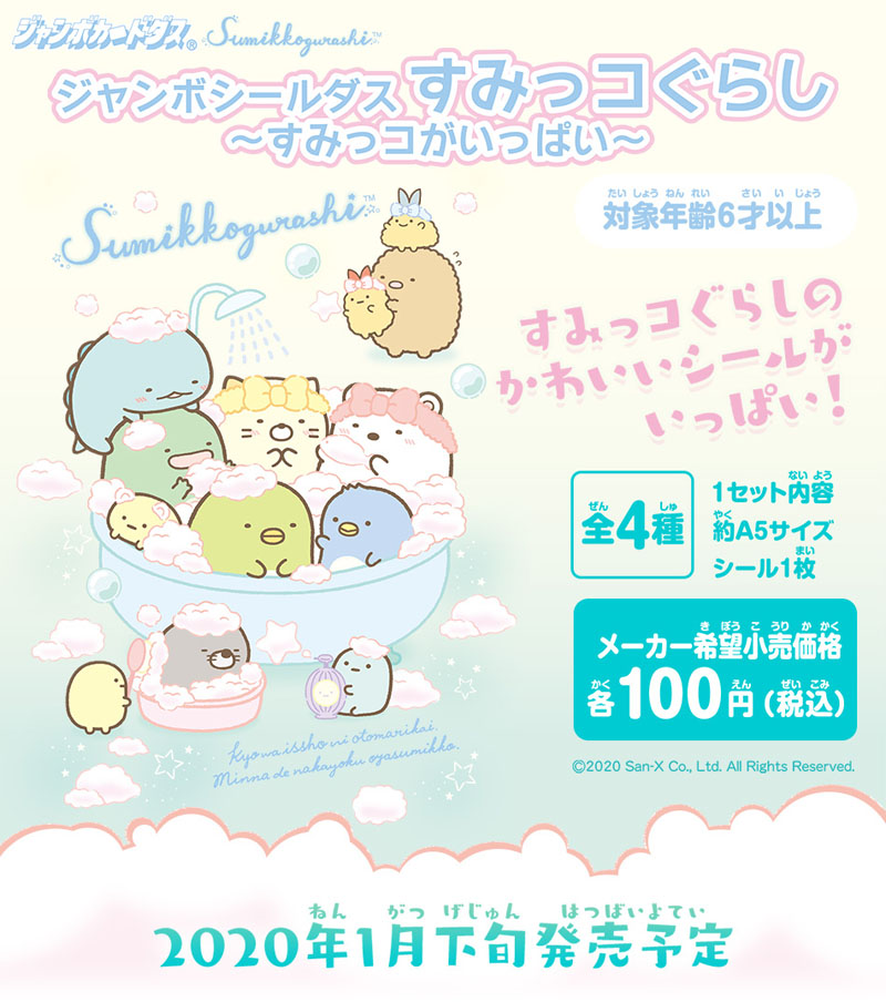 「すみっコぐらし」のジャンボシールダス第9弾「ジャンボシールダス すみっコぐらし~すみっコがいっぱい~」は、2020年1月下旬より、全国の玩具売場などのジャンボカードダス自販機にて販売中です。