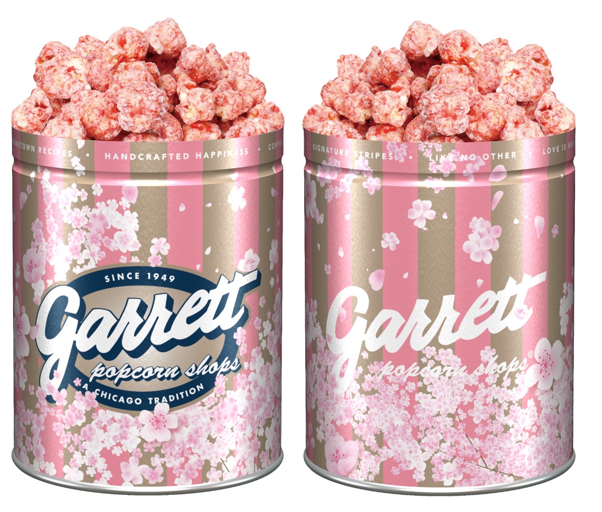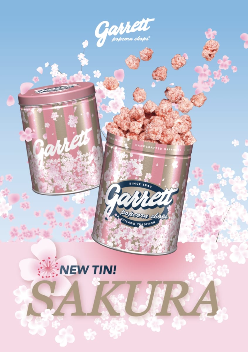 ギャレット ポップコーンにて数量・期間限定で発売されている「ベリーホワイトチョコレート」と「Garrett SAKURA缶」の紹介でした☆