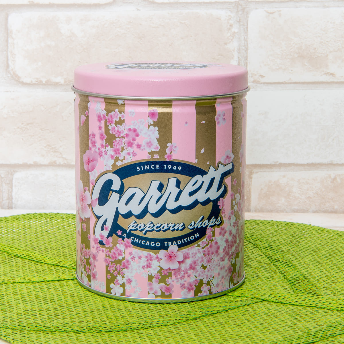 2020年の「Garrett SAKURA缶」は、ピンクとゴールドのストライプに、咲き誇る満開の桜を使ったデザイン☆