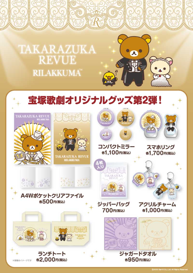 宝塚大劇場オリジナル「リラックマコラボグッズ」第2弾が、宝塚大劇場レビューショップII、レビュー郵便局などで順次販売開始。
