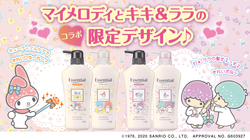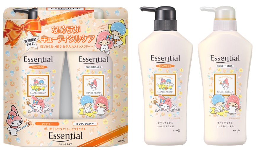 花王のヘアケアシリーズ「エッセンシャル」から、サンリオの人気キャラクター“マイメロディ”と“リトルツインスターズ”デザインのコラボスペシャルボトルが登場!