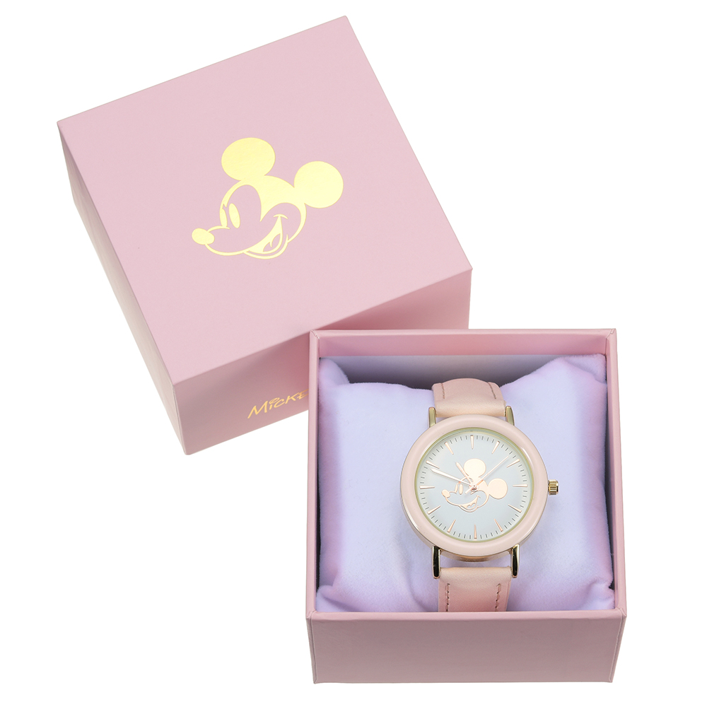 文字盤の真ん中にキャラクターフェイスをピンクゴールドでデザイン。