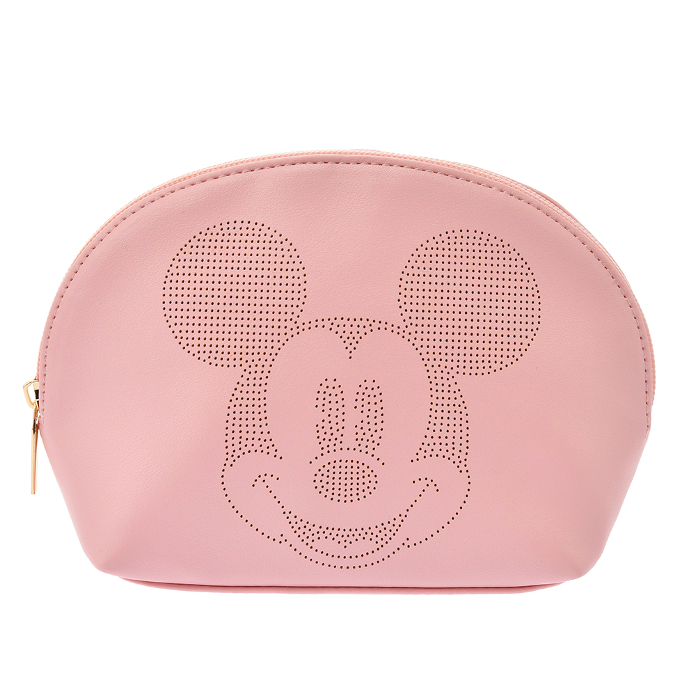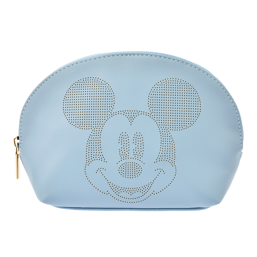 ミッキーフェイスをパンチングで施した大きめポーチ。