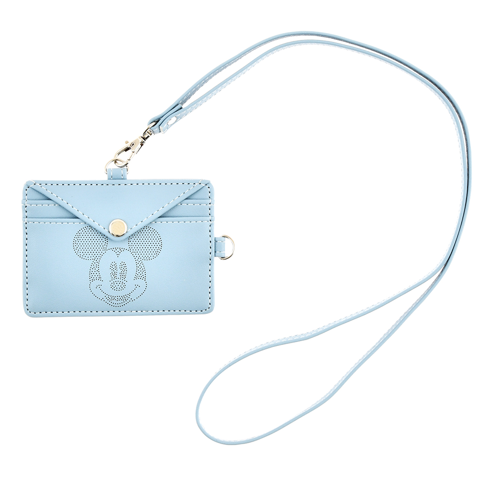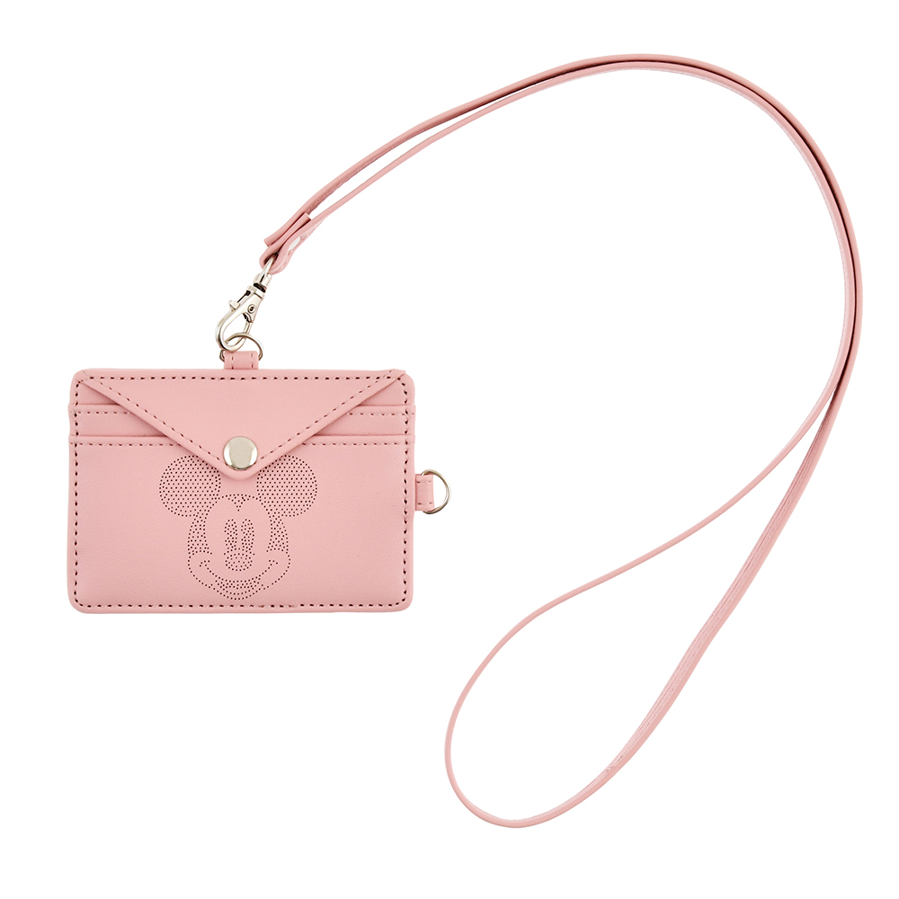 ミッキーフェイスをパンチングで施した、淡いカラーのIDカード・パスケース。