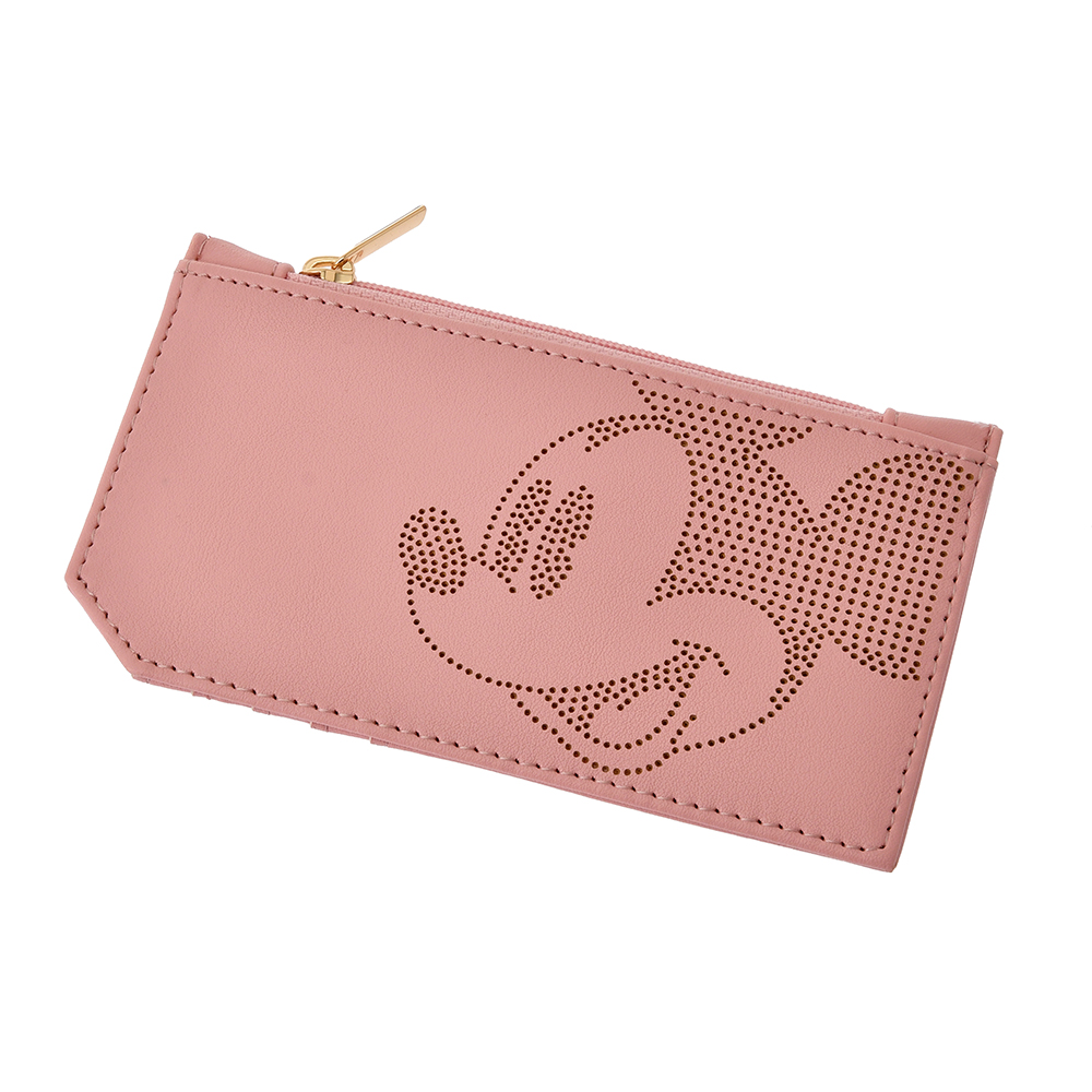 ミッキーフェイスをパンチングで施したファスナー付きコイン&カードケース。