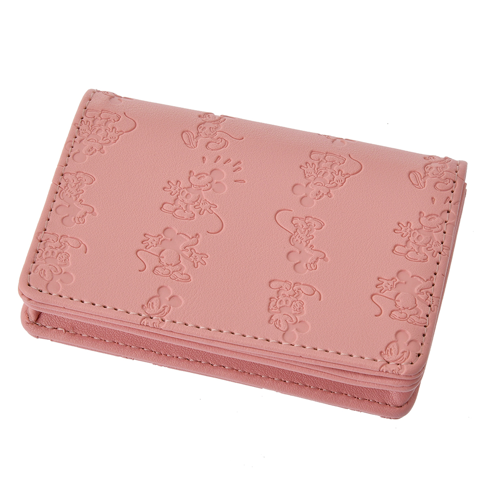 ミッキーを型押しした、淡いピンク色のカードケース。