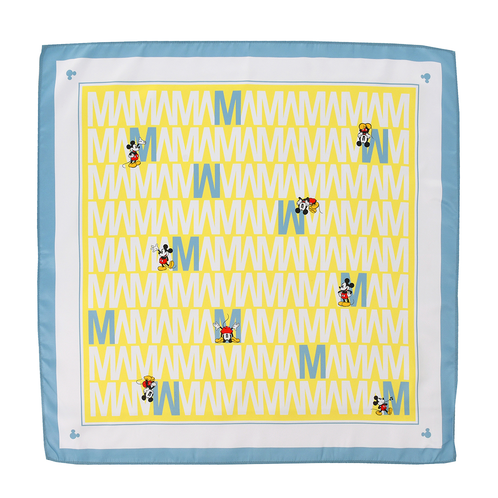 ミッキーのイニシャル「M」を整列させたアルファベット柄に、チャーミングなミッキーの姿を紛れ込ませた、遊び心のあるデザイン。
