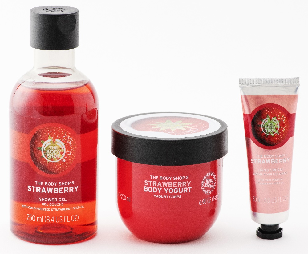 自然の原料をベースにしたコスメが揃う「THE BODY SHOP」のストロベリーシリーズ。