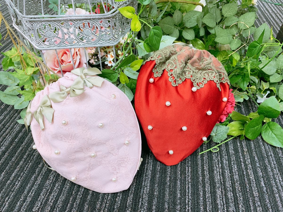 ファッション雑貨店「Maison de FLEUR」にて販売さる「苺レース巾着」と「苺巾着」