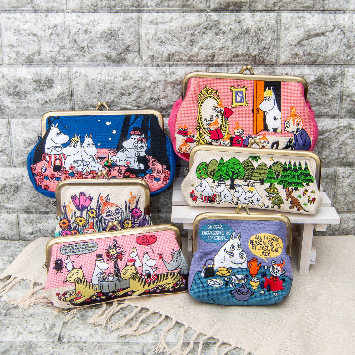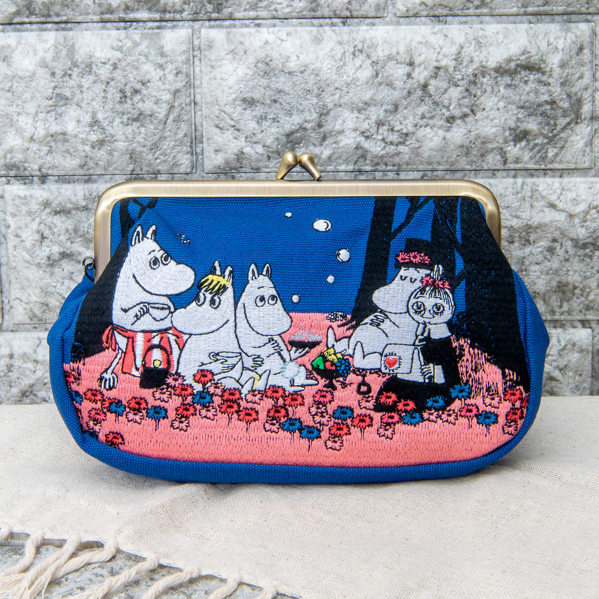 繊細な刺繍で表現された「ムーミン」デザインのがま口。