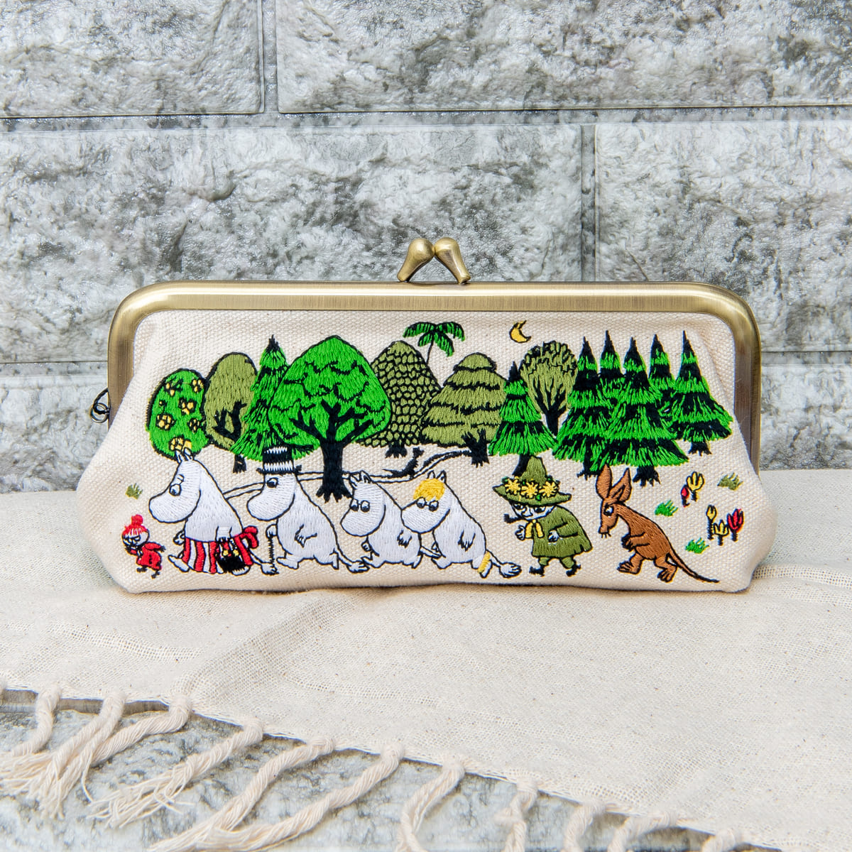 Slim Metal clip type 畳み刺繍ペンポーチスリムがま口 ムーミン 森