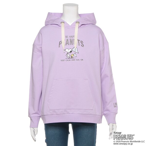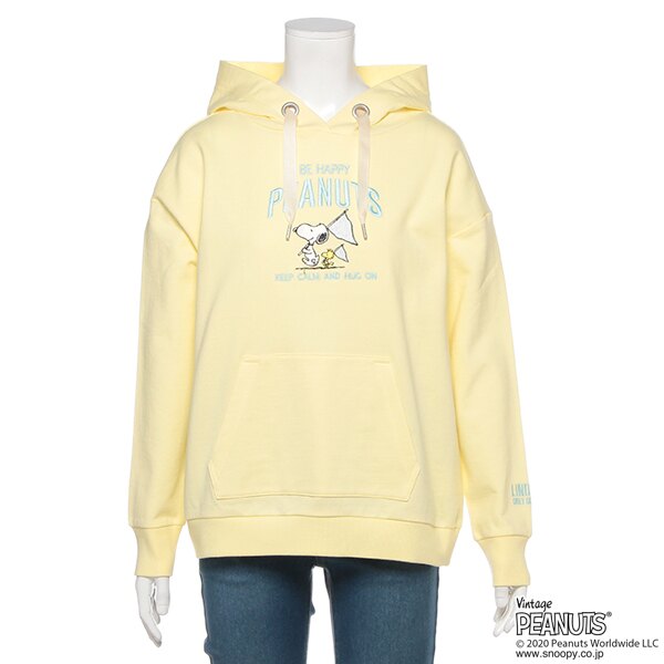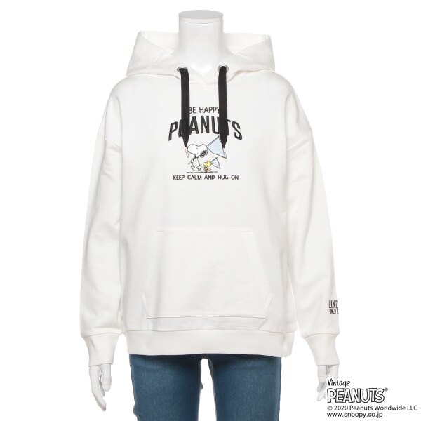 「スヌーピー」の刺しゅうが思わず目に留まる裏毛パーカー。