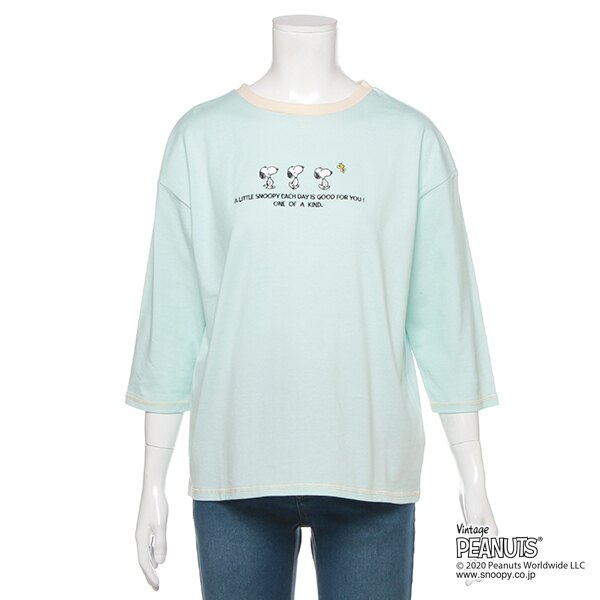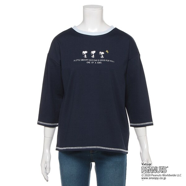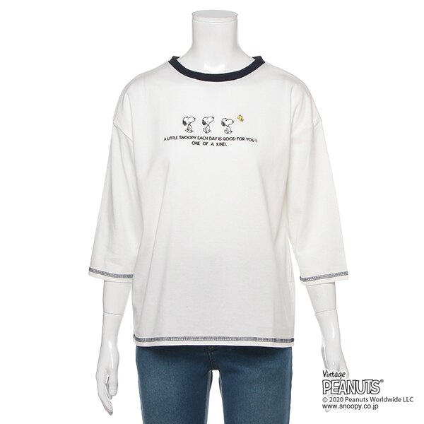 【PEANUTSコラボ】 オーガビッツ スヌーピー刺しゅう7分袖天竺Tシャツ