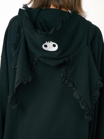フードにはレースのあしらいがあり、ドクロのマークなど、キュートな好アクセントも◎