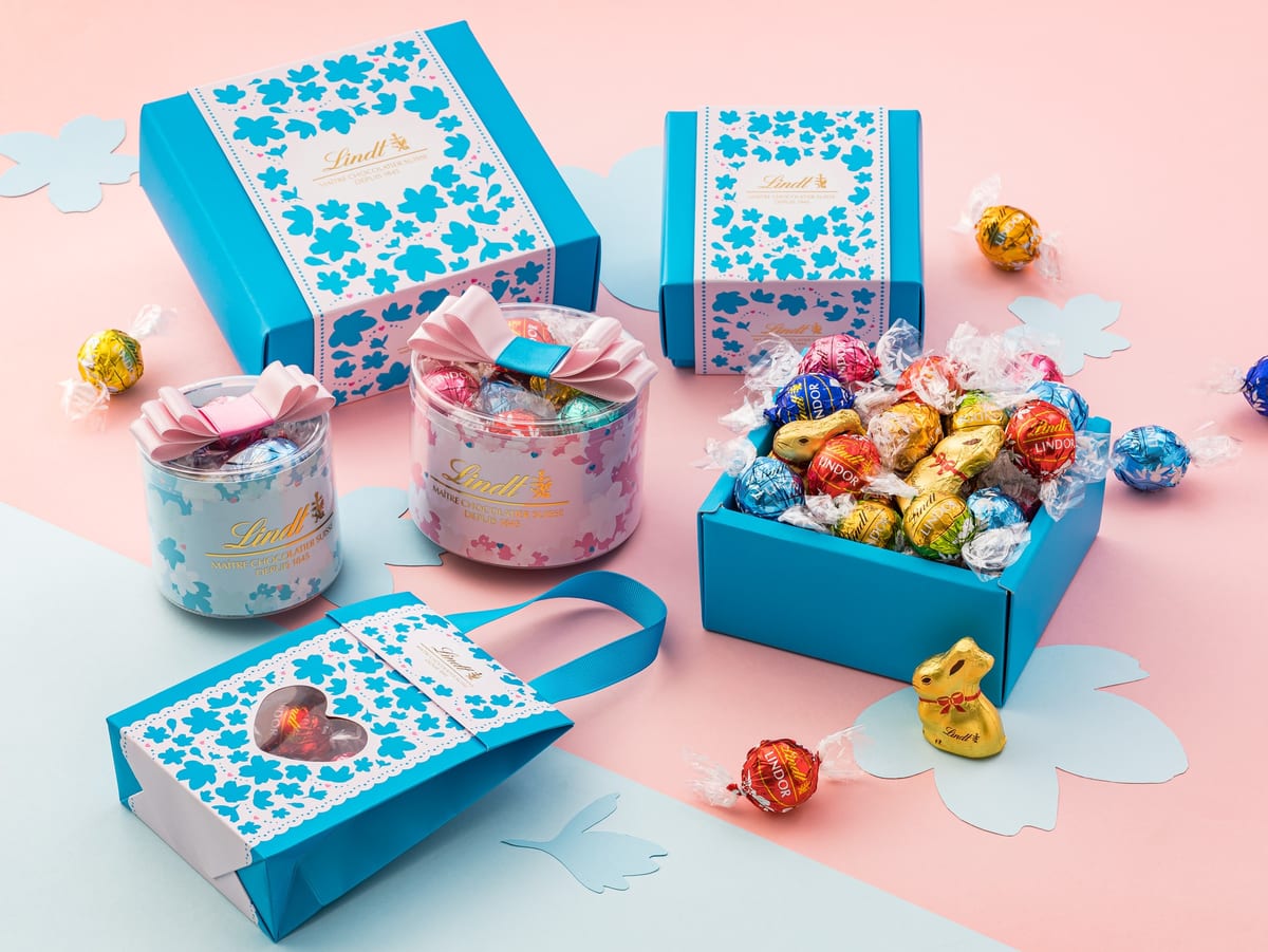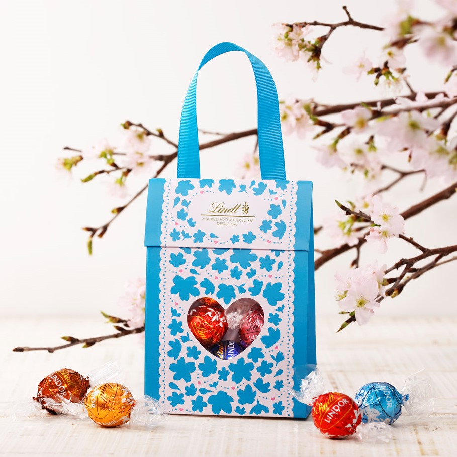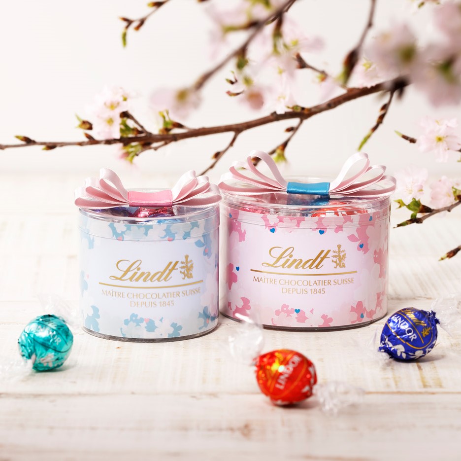 リンドールが展開するのは、桜の花をモチーフにした爽やかなブルーと優しいピンクのホワイトデー期間限定のパッケージ。