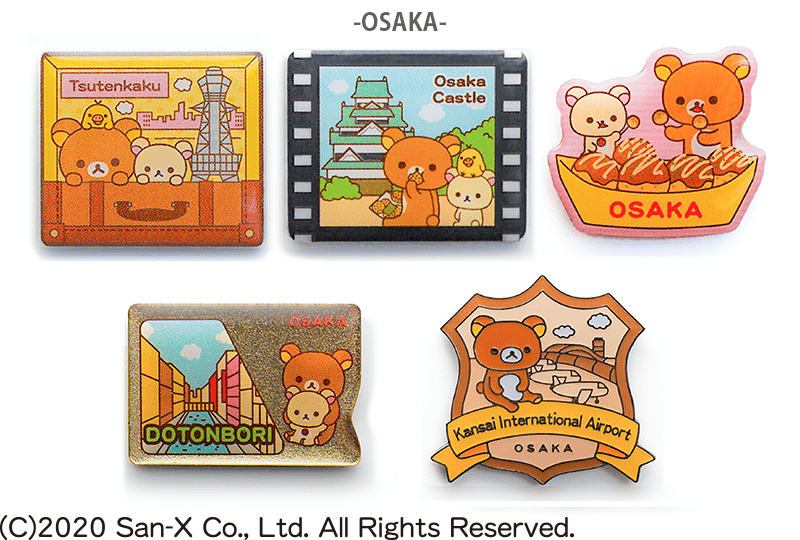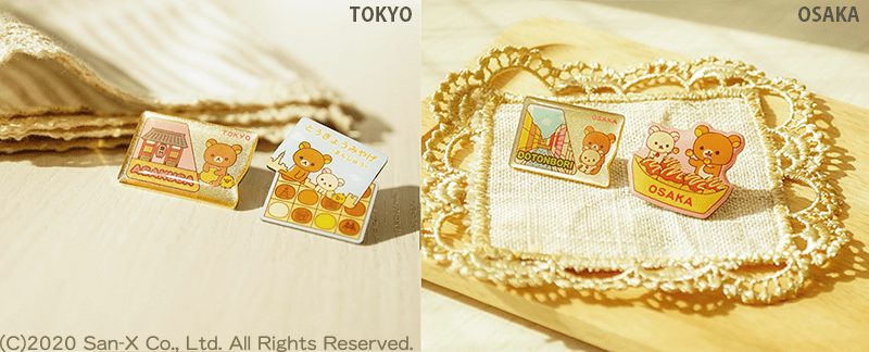 「リラックマご当地ピンズコレクション」の「東京」と「大阪」は、それぞれ東京、大阪のお土産物店などにて販売中です。