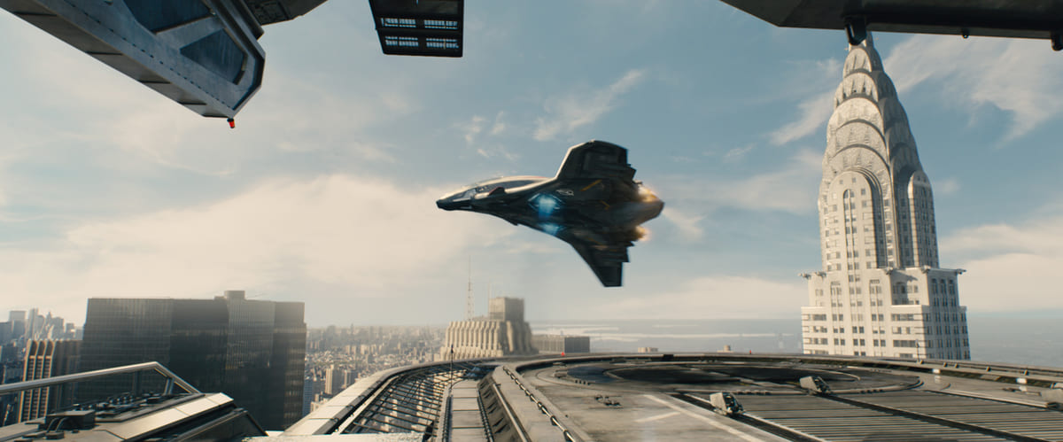大量のロボットによる攻撃に苦戦し、市民を救う手立て失うアベンジャーズでしたが、そこにニックがヘリキャリアで駆けつけ、人々を避難させることに成功。