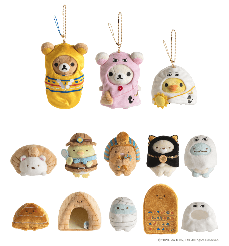 「リラックマ」や「コリラックマ」「キイロイトリ」と「すみっコ」たちが、古代エジプトの神様や戦士、スフィンクスなどになりきったかわいいグッズが盛りだくさんです。