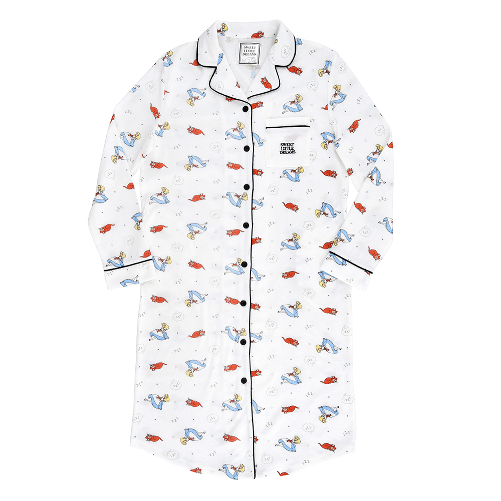 「アリス」と「ダイナ」が総柄でプリントされたルームウェア。