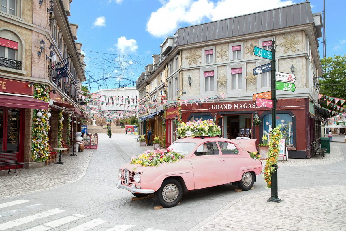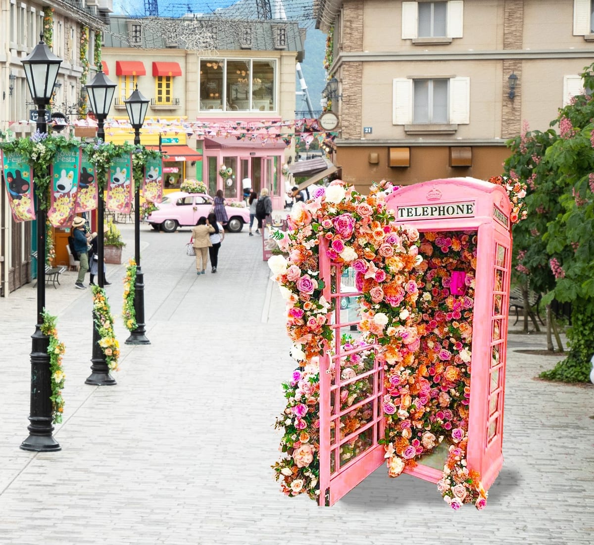 2019年に大好評だったピンクの車両「フラワーカート」の他、電話ボックス、自転車、噴水などたくさんの花々でデコレーションされたアイテムがパリの街並みを彩り、SNS映えするスポットが目白押し!